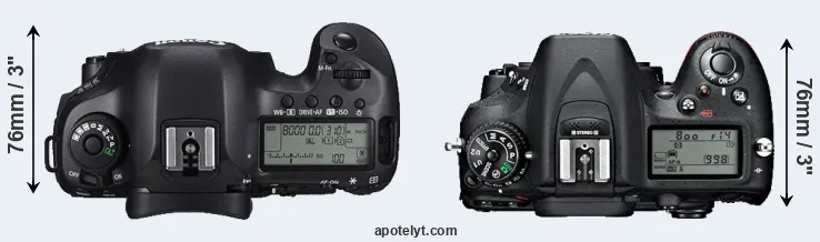 | 7. | Canon 5D Mark IV | 151 mm | 116 mm | 76 mm | 890 g | 900 | Y | Aug 2016 | US$ 3 499 | amazon.com | |