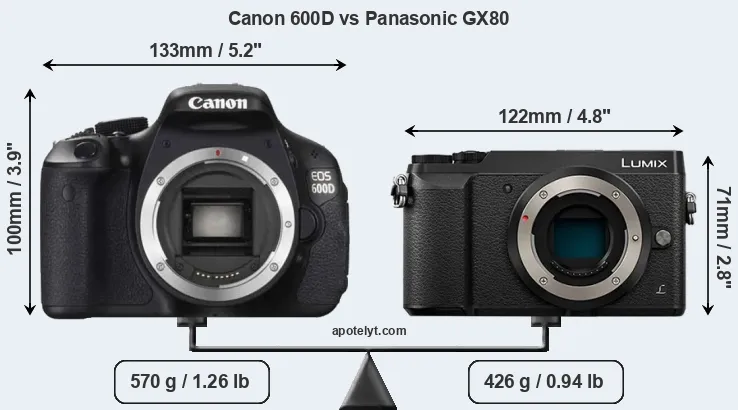 | Body Specs | Canon 600D | Panasonic GX80 |