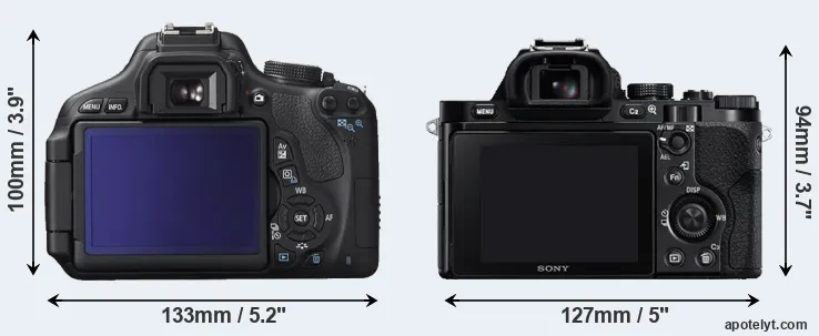 Going beyond this snapshot of core features and characteristics, what are the differences between the Canon EOS 600D and the Sony Alpha A7R? Which one should you buy? Read on to find out how these two cameras compare with respect to their body size, their imaging sensors, their shooting features, their input-output connections, and their reception by expert reviewers.
