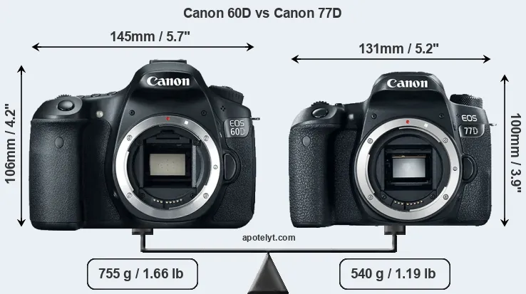 | Body Specs | Canon 60D | Canon 77D |