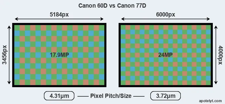 | Sensor Specs | Canon 60D | Canon 77D |