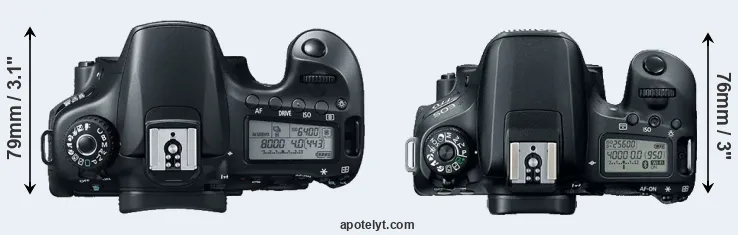| 8. | Canon 80D | 139 mm | 105 mm | 79 mm | 730 g | 960 | Y | Feb 2016 | US$ 1 199 | ebay.com | |