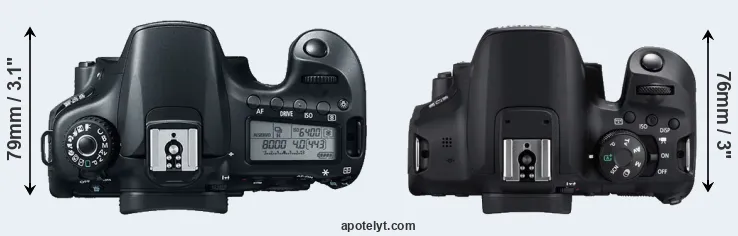 | 8. | Canon 77D | 131 mm | 100 mm | 76 mm | 540 g | 600 | n | Feb 2017 | US$ 899 | ebay.com | |