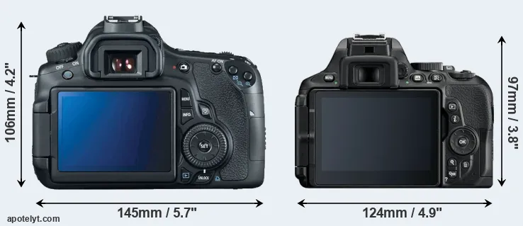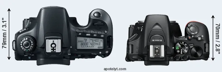 | 8. | Canon 80D | 139 mm | 105 mm | 79 mm | 730 g | 960 | Y | Feb 2016 | US$ 1 199 | ebay.com | |