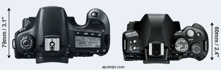 | 8. | Canon 80D | 139 mm | 105 mm | 79 mm | 730 g | 960 | Y | Feb 2016 | US$ 1 199 | ebay.com | |