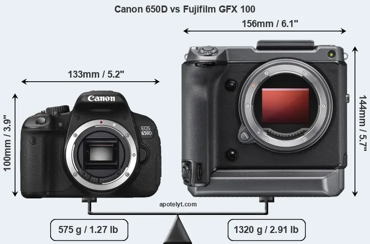 | Body Specs | Canon 650D | Fujifilm GFX 100 |