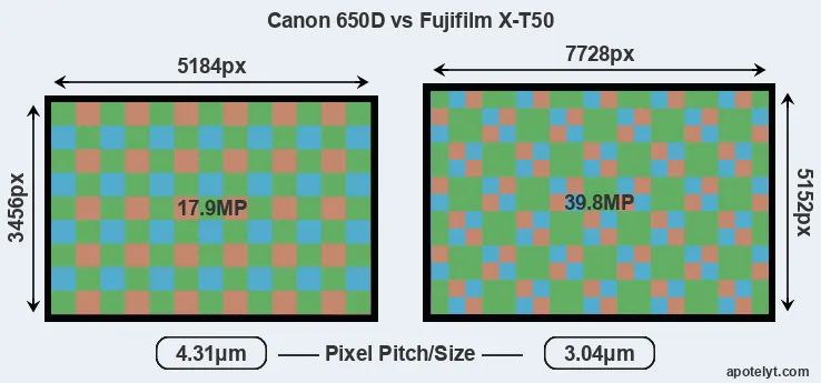 | Sensor Specs | Canon 650D | Fujifilm X-T50 |