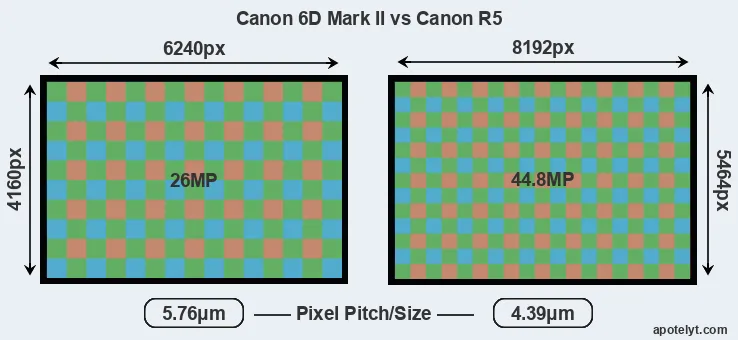 | Sensor Specs | Canon 6D Mark II | Canon R5 |