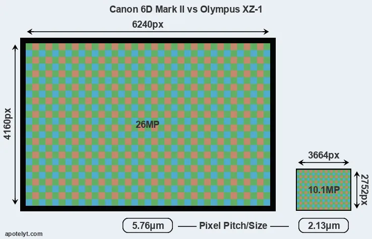| Sensor Specs | Canon 6D Mark II | Olympus XZ-1 |