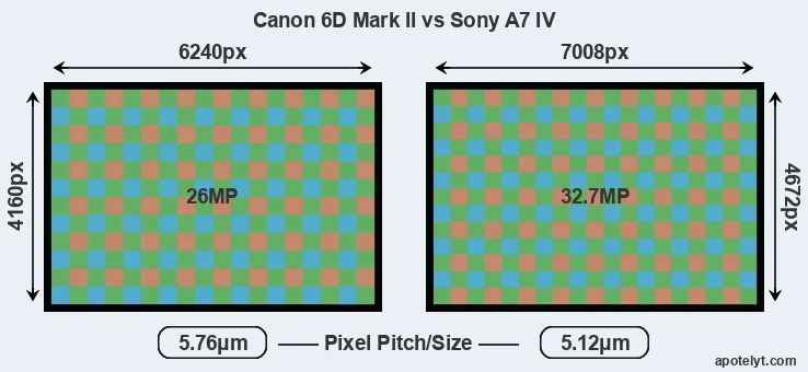 | Sensor Specs | Canon 6D Mark II | Sony A7 IV |