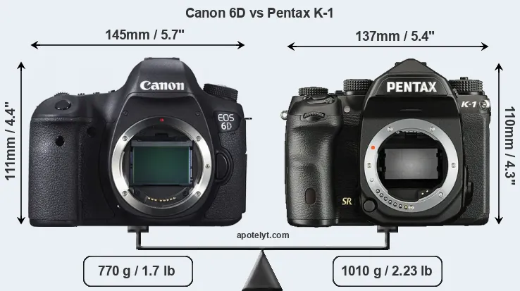 | Body Specs | Canon 6D | Pentax K-1 |