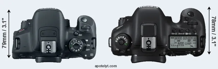 | 6. | Canon 70D | 139 mm | 104 mm | 79 mm | 755 g | 920 | Y | Jul 2013 | US$ 1 199 | ebay.com | |