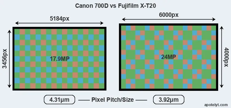 | Sensor Specs | Canon 700D | Fujifilm X-T20 |