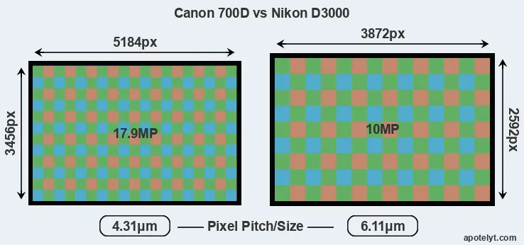 | Sensor Specs | Canon 700D | Nikon D3000 |