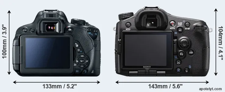 Going beyond this snapshot of core features and characteristics, what are the differences between the Canon EOS 700D and the Sony Alpha SLT-A77 II? Which one should you buy? Read on to find out how these two cameras compare with respect to their body size, their imaging sensors, their shooting features, their input-output connections, and their reception by expert reviewers.