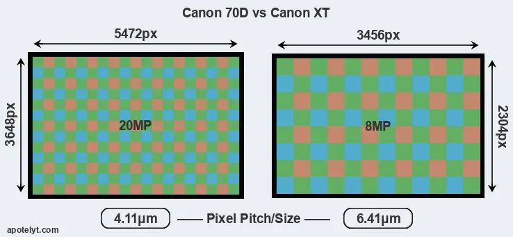 | Sensor Specs | Canon 70D | Canon XT |