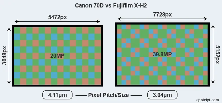 | Sensor Specs | Canon 70D | Fujifilm X-H2 |