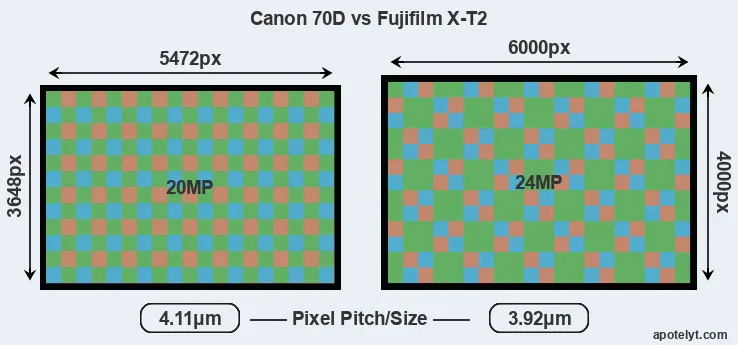 | Sensor Specs | Canon 70D | Fujifilm X-T2 |