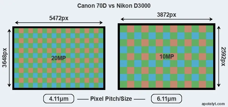 | Sensor Specs | Canon 70D | Nikon D3000 |