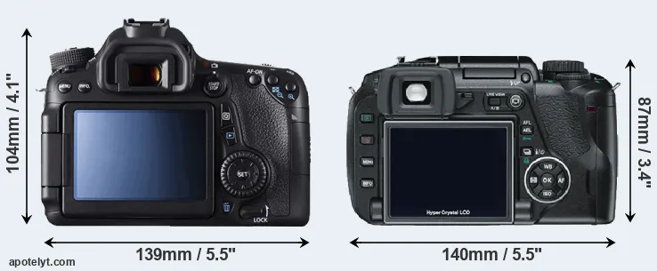 | 8. | Canon 80D | 139 mm | 105 mm | 79 mm | 730 g | 960 | Y | Feb 2016 | US$ 1 199 | ebay.com | |