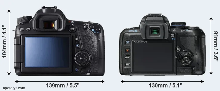 Going beyond this snapshot of core features and characteristics, what are the differences between the Canon EOS 70D and the Olympus E-450? Which one should you buy? Read on to find out how these two cameras compare with respect to their body size, their imaging sensors, their shooting features, their input-output connections, and their reception by expert reviewers.