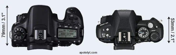 | 8. | Canon 80D | 139 mm | 105 mm | 79 mm | 730 g | 960 | Y | Feb 2016 | US$ 1 199 | ebay.com | |