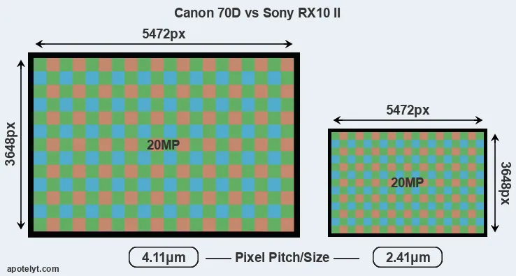 | Sensor Specs | Canon 70D | Sony RX10 II |