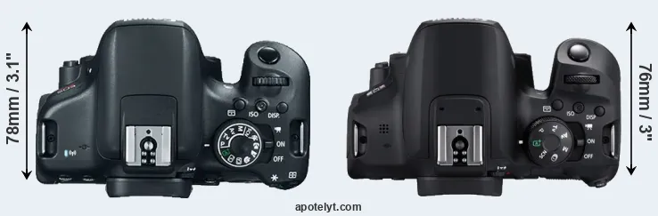 | 3. | Canon 77D | 131 mm | 100 mm | 76 mm | 540 g | 600 | n | Feb 2017 | US$ 899 | ebay.com | |