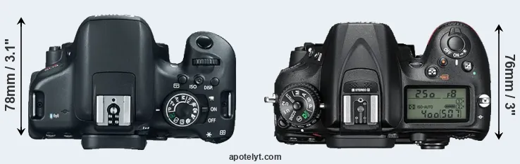 | 8. | Canon 800D | 131 mm | 100 mm | 76 mm | 532 g | 600 | n | Feb 2017 | US$ 749 | ebay.com | |