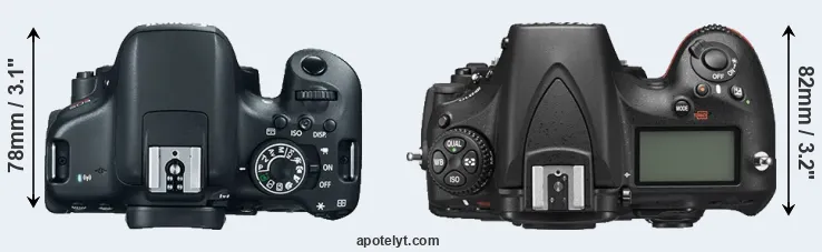 | 8. | Canon 800D | 131 mm | 100 mm | 76 mm | 532 g | 600 | n | Feb 2017 | US$ 749 | ebay.com | |