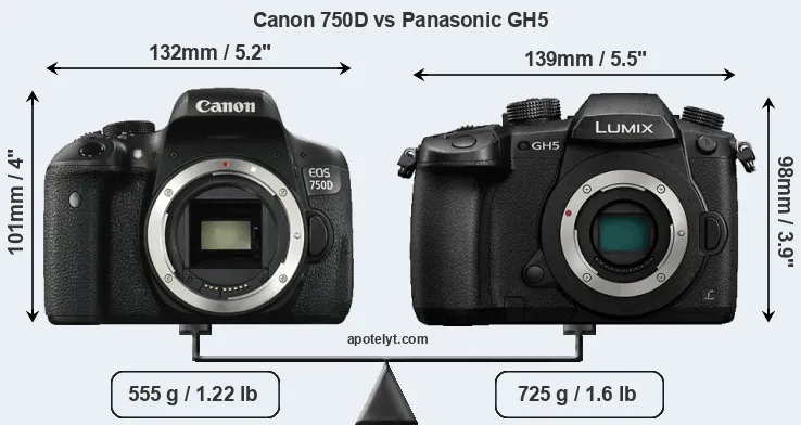 | Body Specs | Canon 750D | Panasonic GH5 |