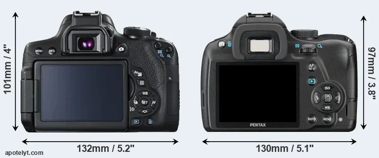 | Screen Specs | Canon 750D | Pentax K-50 |