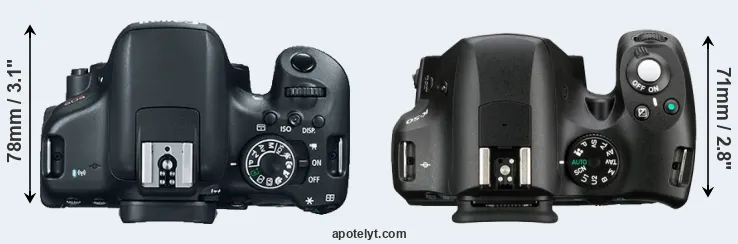 | 1. | Canon 750D | 132 mm | 101 mm | 78 mm | 555 g | 440 | n | Feb 2015 | US$ 749 | ebay.com | |