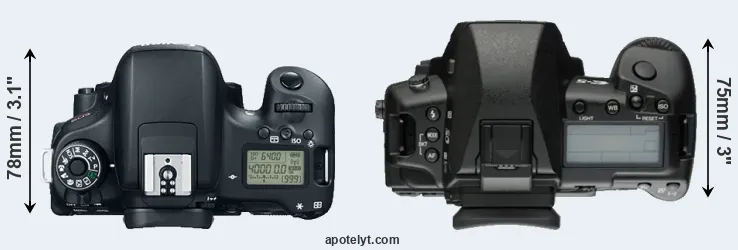 | 1. | Canon 760D | 132 mm | 101 mm | 78 mm | 565 g | 440 | n | Feb 2015 | US$ 649 | ebay.com | |