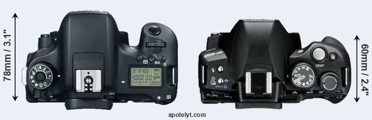 | 3. | Canon 77D | 131 mm | 100 mm | 76 mm | 540 g | 600 | n | Feb 2017 | EUR 899 | ebay.com | |