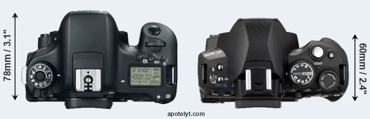 | 3. | Canon 77D | 131 mm | 100 mm | 76 mm | 540 g | 600 | n | Feb 2017 | US$ 899 | ebay.com | |