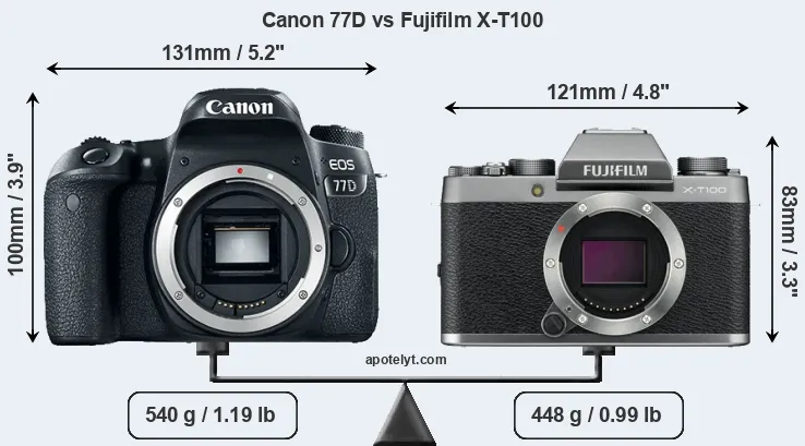 | Body Specs | Canon 77D | Fujifilm X-T100 |