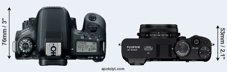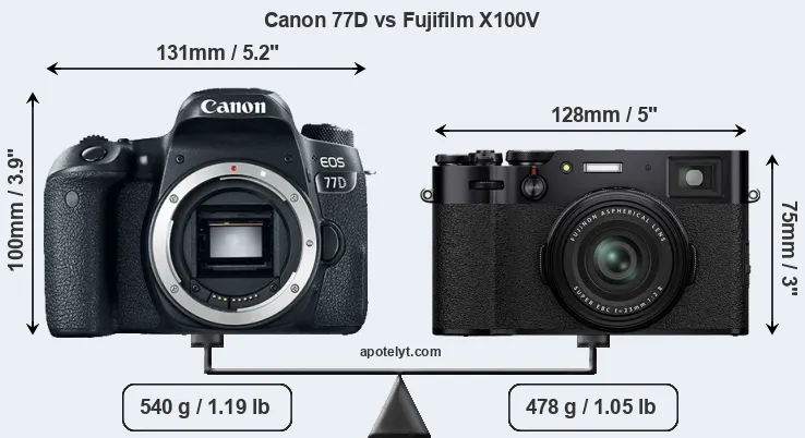 | Body Specs | Canon 77D | Fujifilm X100V |