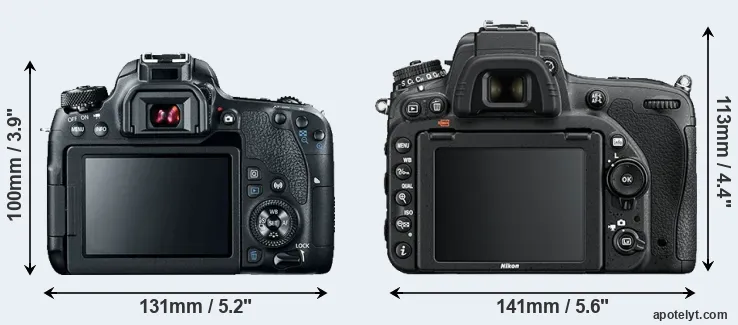 The side-by-side display below illustrates the physical size and weight of the Canon 77D and the Nikon D750. The two cameras are presented according to their relative size. Three consecutive perspectives from the front, the top, and the back are available. All width, height and depth measures are rounded to the nearest millimeter.