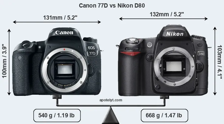 | Body Specs | Canon 77D | Nikon D80 |