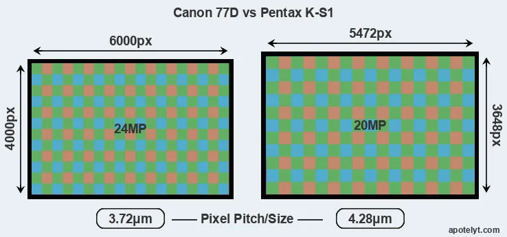 | Sensor Specs | Canon 77D | Pentax K-S1 |