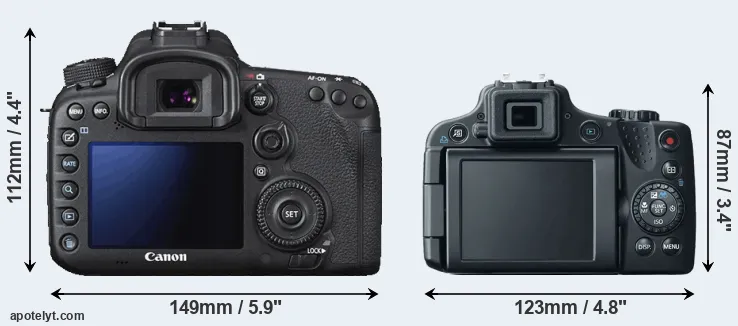 If the front view area (width x height) of the cameras is taken as an aggregate measure of their size, the Canon SX50 is considerably smaller (36 percent) than the Canon 7D II. It is worth mentioning in this context that the 7D Mark II is splash and dust resistant, while the SX50 does not feature any corresponding weather-sealing.