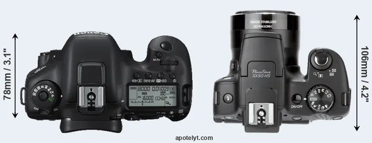 | 7. | Canon 70D | 139 mm | 104 mm | 79 mm | 755 g | 920 | Y | Jul 2013 | US$ 1 199 | ebay.com | |