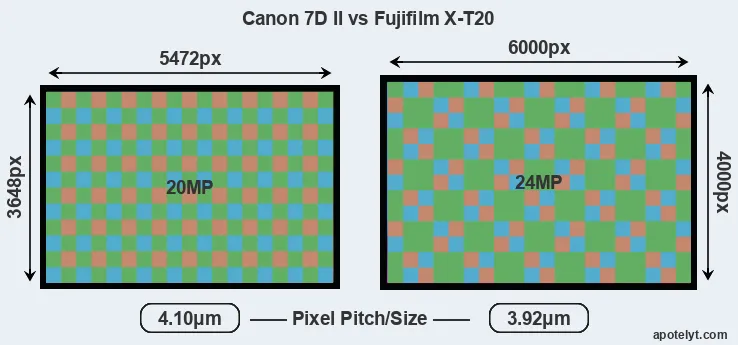 | Sensor Specs | Canon 7D II | Fujifilm X-T20 |