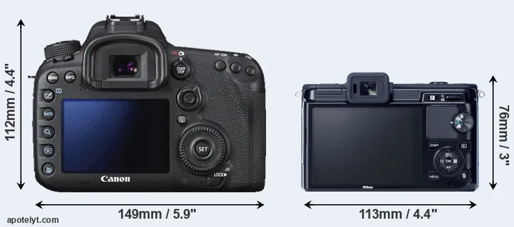 Going beyond this snapshot of core features and characteristics, what are the differences between the Canon EOS 7D Mark II and the Nikon 1 V1? Which one should you buy? Read on to find out how these two cameras compare with respect to their body size, their imaging sensors, their shooting features, their input-output connections, and their reception by expert reviewers.
