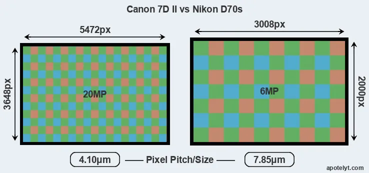 | Sensor Specs | Canon 7D II | Nikon D70s |