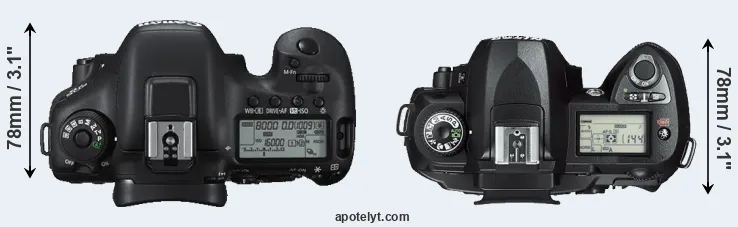 | 8. | Canon 70D | 139 mm | 104 mm | 79 mm | 755 g | 920 | Y | Jul 2013 | US$ 1 199 | ebay.com | |