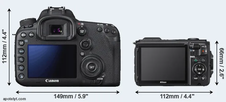Going beyond this snapshot of core features and characteristics, what are the differences between the Canon EOS 7D Mark II and the Nikon Coolpix W300? Which one should you buy? Read on to find out how these two cameras compare with respect to their body size, their imaging sensors, their shooting features, their input-output connections, and their reception by expert reviewers.