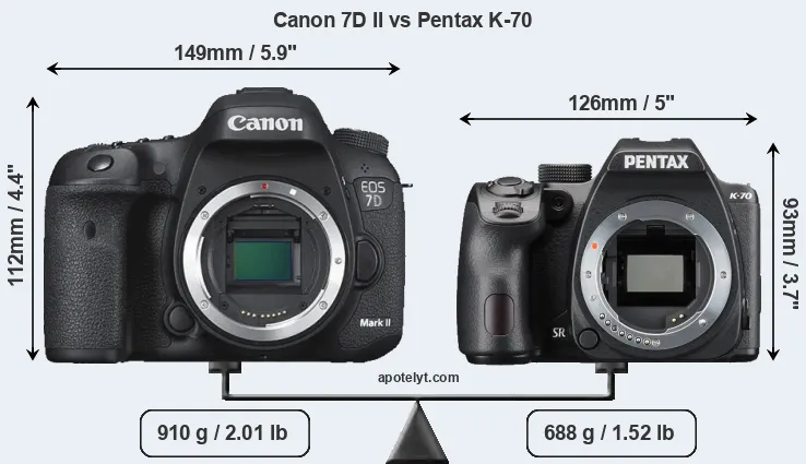 Size Canon 7D II vs Pentax K-70