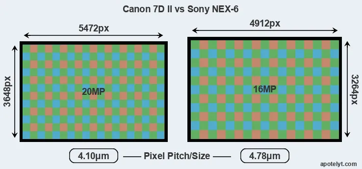 | Sensor Specs | Canon 7D II | Sony NEX-6 |